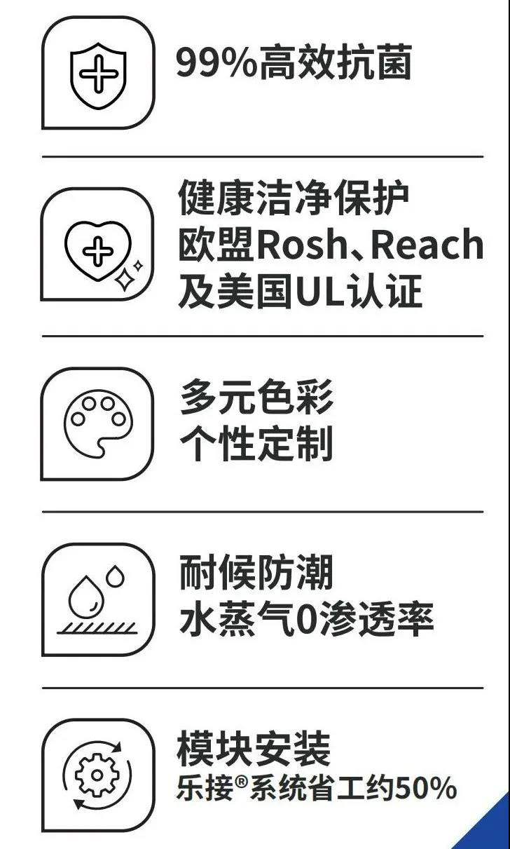 等特點。主要應用于各類醫(yī)院、體檢中心、醫(yī)美等醫(yī)療機構、食品(零食)專賣店、嬰幼兒早教機構、食品工廠、藥廠、化妝品車間、實驗研究中心等,主要應用的場景為內裝墻面,包含過道、連廊、病房間墻面、手術室、觀察室、檢測室、活動區(qū)、加工車間、檢測車間等區(qū)域。