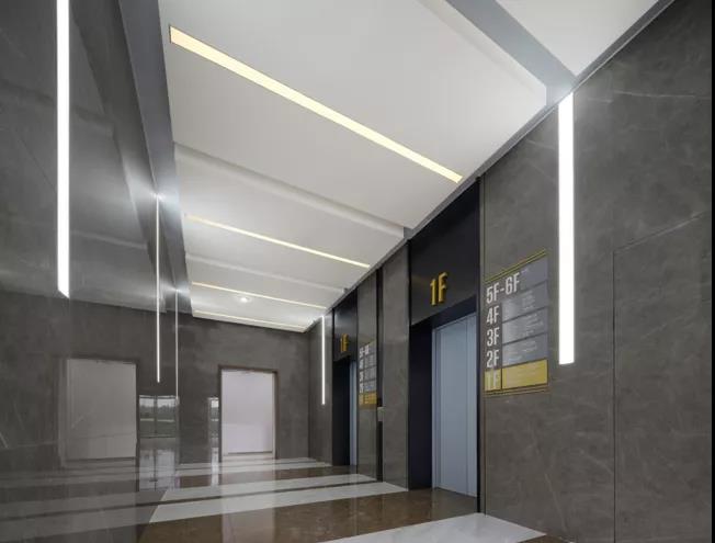 ▲ 圖50 專業(yè)化/尊貴化:綜合樓電梯廳線性燈光氛圍和標(biāo)識(shí)標(biāo)牌一體化