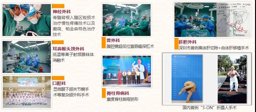 為建設好以上重點或特色學科,醫院還依托“三名工程”(名科、名院、名診所)引進了7個學科頂尖團隊,分別是:急診科--中國工程院鄭靜晨院士團隊、脊柱骨病科--空軍軍醫大學武勝昔教授團隊、肝膽外科--復旦大學中山醫院樊嘉院士帶領的肝膽胰腫瘤精準診療創新團隊、耳鼻喉頭頸外科--復旦大學附屬眼耳鼻喉科醫院周梁教授頭頸咽喉鼻-顱底外科團隊、神經外科--首都醫科大學宣武醫院王玉平教授癲癇多學科診療團隊、血液腫瘤科--浙江大學醫學院附屬第一醫院黃河教授造干細胞移植及細胞兔疫治療團隊、普外科--上海交大醫學院附屬瑞金醫院鄭民華胃腸微創外科團隊。七團隊扎根深大總醫院,不僅為深大總醫院學科建設注入強勁動力,也推動了深圳此類學科的建設與發展。