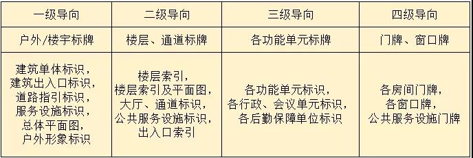 2 標(biāo)識導(dǎo)向分級宜按下表設(shè)置。